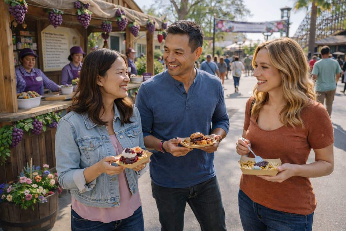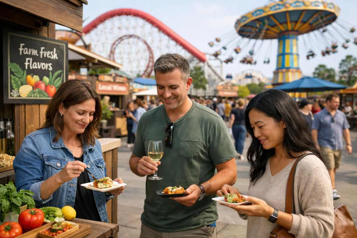 Disney California Adventure’s Food and Wine Festival adds tasting stations and cooking demonstrations throughout the park. Seasonal menus highlight California ingredients, blending casual food exploration with rides and entertainment inside one of the state’s most popular theme parks.