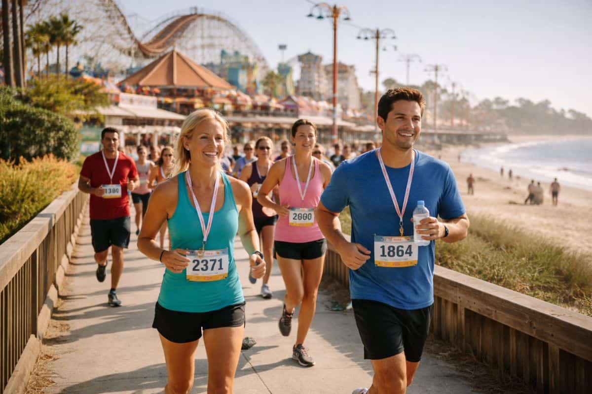 The Santa Cruz Boardwalk Fun Run offers a scenic 5K along the beach beside classic amusement rides. Participants earn medals and arcade time, turning the race into a mix of exercise and laid-back seaside fun.