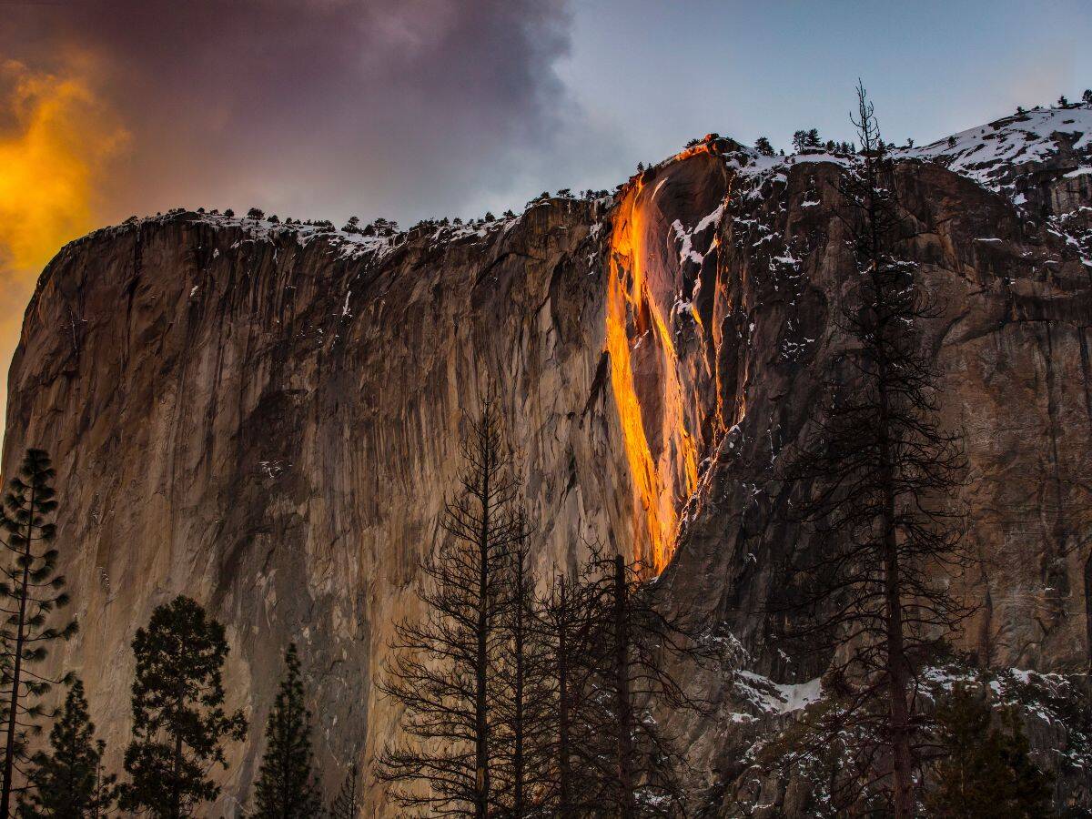 For about 2 weeks in February, the setting sun reflects off Horsetail Fall and creates the illusion of glowing fire cascading down El Capitan. This natural phenomenon draws crowds every year, so planning ahead and arriving early is important.